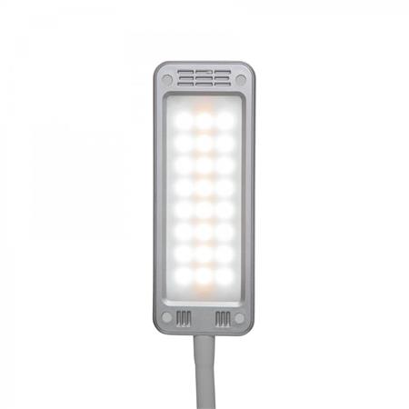 A színhőmérséklet és a fényerősség napszaktól és igényektől függően 3 fokozatban állítható. Erős fényigényű területet megfelelően világít meg, extra takarékos, 80%-kal alacsonyabb energiaszükséglet a hagyományos izzókhoz képest. helytakarékos, könnyen kezelhető, stabil műanyag talpa nehezékként szolgáló súlybetéttel felszerelt. A fém kar gumírozott felülettel ellátott, a műanyag lámpafej forgatható és billenthető. Biztonságos és környezetbarát, újrahasznosítható csomagolás.