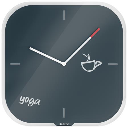 Falióra, üveg, négyzet alakú, 30x30 cm, LEITZ "Cosy", bársonyszürke