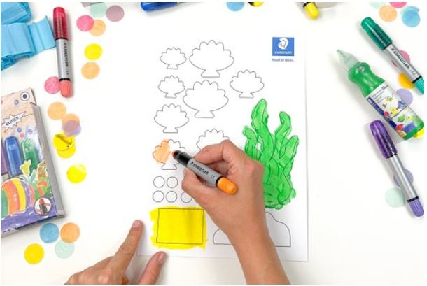 7. A kagylóknak metálfényű dekormarkerekkel vagy csillogó zselés zsírkrétával adhatunk különleges hatást.