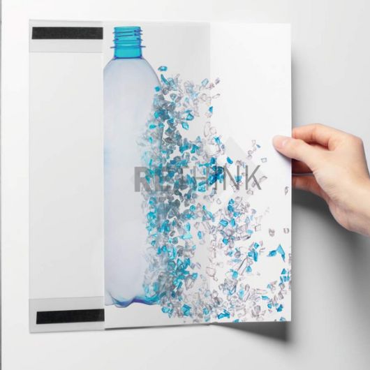 Az A4 és A3 méretű információtartók a fenntarthatóság jegyében készültek, mivel 80%-ban újrahasznosított PET (rPET) anyagból állnak. Ezek a tartók egyszerűen használhatók, az oldalsó nyíláson keresztül könnyedén cserélhetők bennük a dokumentumok.