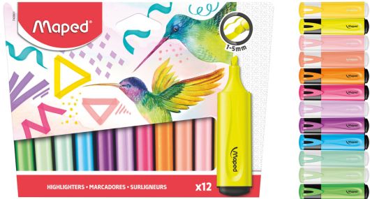 Ki mondta, hogy választanunk kell a neon- és pasztellszínek között? A MAPED „Fluo Peps Assorted” 12 darabos készletében 6 fluo, valamint 6 pasztell árnyalatú szövegkiemelő rejlik.