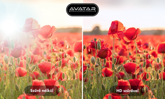 Csodáld meg úgy a világot, ahogy szabad szemmel eddig még nem láthattad: élénk, még vörösebb pipacsmezők, selymes kék ég, lágy meleg napfényben fürdő táj – az AVATAR HD szűrős napszemüvegeivel minden részlet a helyére kerül!