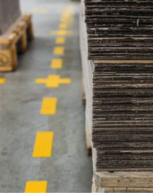 A gyártásban és logisztikában a precíz feliratozás és jelölés alapvető, hogy megszűntessük a hibaforrásokat és az időigényes kereséseket. A Leonardo Group GmbH által folytatott tanulmány szerint több, mint 20% növekedés érhető el a termelékenységben, csak a keresési idő csökkentésével. Kerülje a felesleges, vagy zavaró mozgásokat: a padlójelölők pontosan mutatják a mozgás irányát, veszélyes területeket, vagy kijelölik a tárolás helyét.