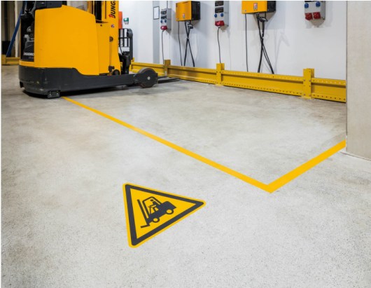 Az ipari csarnokokban és raktárakban a járdák és feljárók egyértelmű jelölése nem csak a zökkenőmentes munkafolyamatok szempontjából fontos. A munkavédelem részeként a biztonsági és veszélyzónáknak is egyértelműen felismerhetőnek kell lenniük. A veszélyes területek, parkolóhelyek és folyosók egyszerűen és gyorsan jelölhetők a DURABLE padlójelölő szalagokkal.