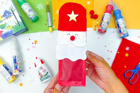 Helyezzünk a dobozba egy elemes mini fényfüzért, és el is készült a saját készítésű Mikulás dekorációnk!