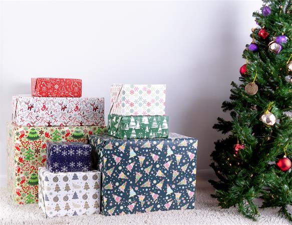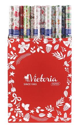 Csomagolópapír, íves, 70x200 cm, 60 tekercs, vegyes karácsonyi minták, VICTORIA PAPER