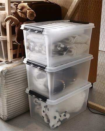 Műanyag tárolódoboz, 47 liter, fekete fogantyúkkal, SMARTSTORE "Classic 45", átlátszó