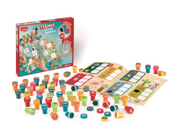 Nyomdázó készlet, foglalkoztató füzettel, betűk és állatok, MAPED CREATIV "Stamps"