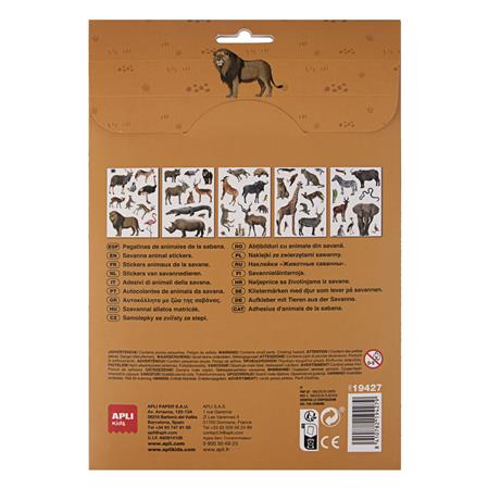 Matrica, újra felhasználható, 50 db, APLI Kids "Stickers", szavanna állatai