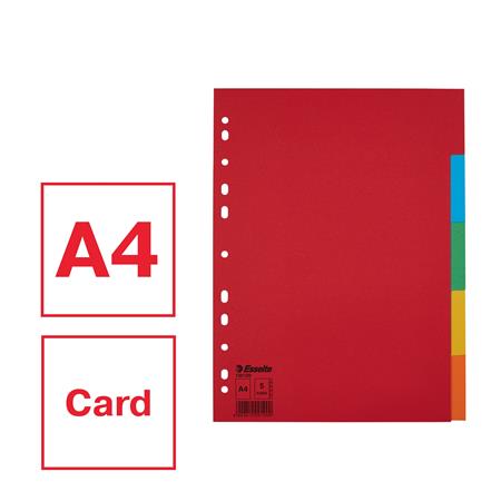 Regiszter, karton, A4, 5 részes, ESSELTE "Economy", színes