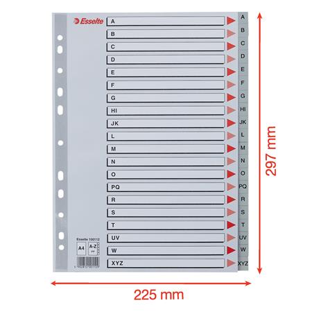 Regiszter, műanyag, A4, A-Z, ESSELTE, szürke