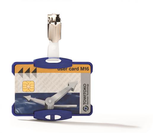 Azonosítókártya-tartó, 54x85 mm, csiptetővel, DURABLE, kék
