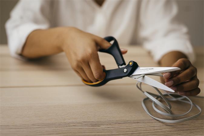 Olló, barkács, 21 cm, FISKARS "Amplify", fekete