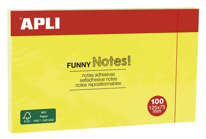 Öntapadó jegyzettömb, 125x75 mm, 100 lap, APLI "Funny", sárga