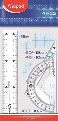 Vonalzókészlet, kicsi, műanyag, 4 darabos, MAPED "Start"