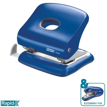 Lyukasztó, kétlyukú, 30 lap, RAPID "FC30", vízkék