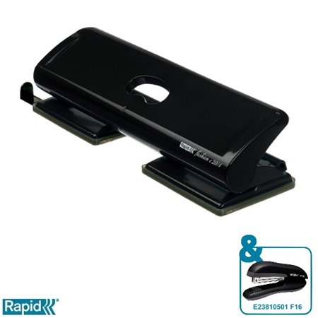 Lyukasztó, négylyukú, 20 lap, fém, RAPID "FC20/4", fekete