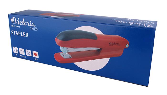 Tűzőgép, 24/6, 26/6, 20 lap, VICTORIA OFFICE, "Full-Strip", piros