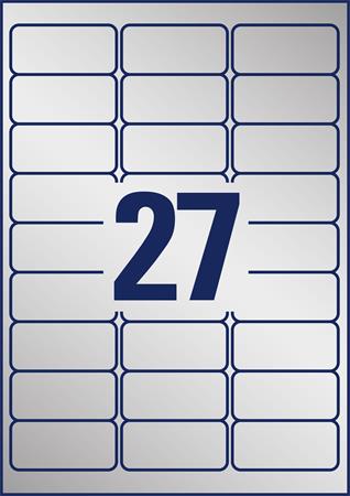 Etikett, 63,5x29,6 mm, poliészter, időjárásálló, AVERY ZWECKFORM, ezüst, 540 etikett/csomag