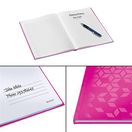 KezdőlapIrodaszerekIrodai papíráruFüzetek, gyűrűskönyvbetétekBeíró, A4, kockás, 80 lap, keményfedeles, LEITZ "Wow", rózsaszín