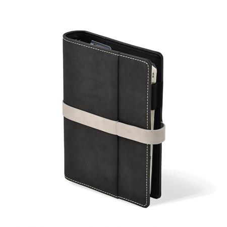 Kalendárium, gyűrűs, betétlapokkal, "M", műbőr, SATURNUS,"225",fekete-szürke