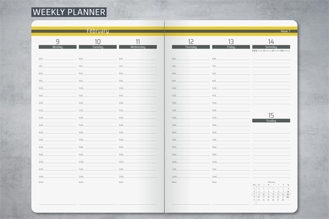 Naptár, A5, heti, 2026, kemény borító, SIGEL "Linescape", szürke-sárga