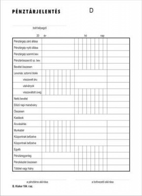 Nyomtatvány, pénztárjelentés, 25x2, A5, VICTORIA PAPER "B.Kisker-104", 10 tömb/csomagAlapítvány támogatás 2 Ft