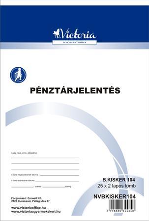 Nyomtatvány, pénztárjelentés, 25x2, A5, VICTORIA PAPER "B.Kisker-104", 10 tömb/csomag
