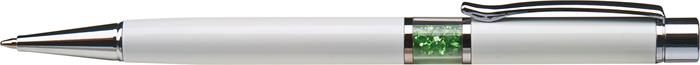 Golyóstoll, fehér, középen peridot zöld SWAROVSKI® kristállyal töltve, 14cm, ART CRYSTELLA®