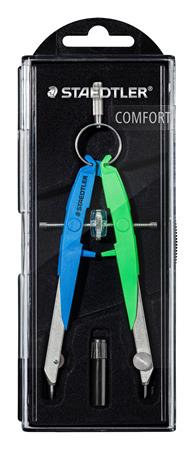 Körző készlet, precíziós, 2 darabos, STAEDTLER "Mars Comfort 556", neon kék/zöld
