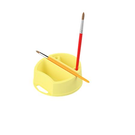 Műanyag ecsettál két vizes rekesszel.