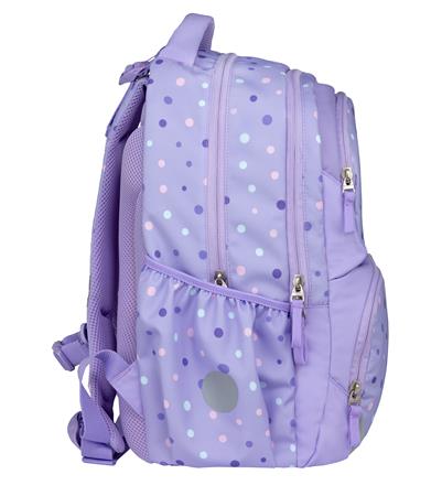 Iskolatáska, cipzáras, BELMIL "Maxi Pack Purple Dots", lila pöttyös