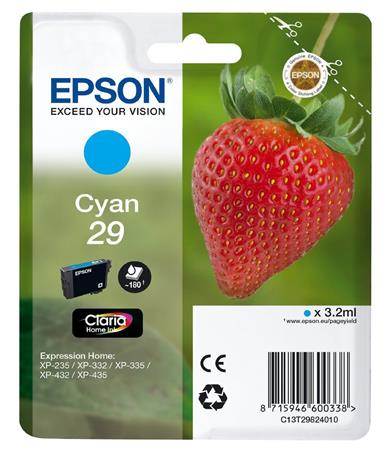 C13T29824010 Tintapatron XP235/332 nyomtatókhoz, EPSON, cián, 3,2ml