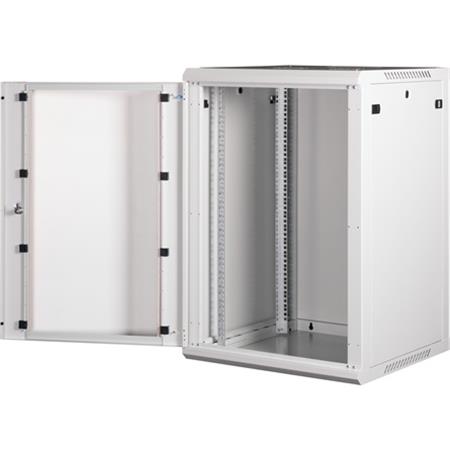 Rack szekrény, fali, 19", 18U, lapraszerelt, LANDE "PROlineB", szürke
