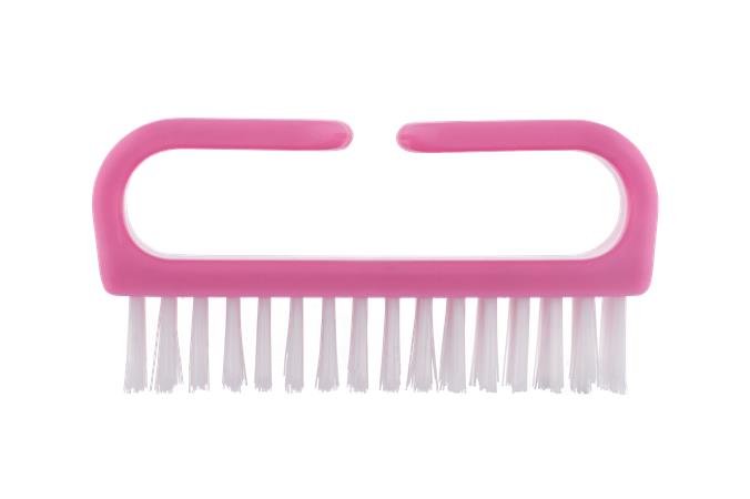 Markolattal ellátott műanyag körömkefe, műanyag szálakkal.
