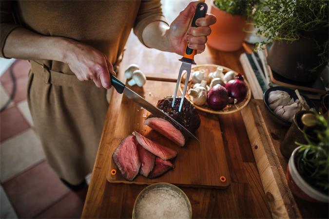 A Fiskars Functional Form ™ szeletelő kés egy hosszú, egyenes, hegyes végű kés, amelyet kényelmes használni és könnyű kezelni