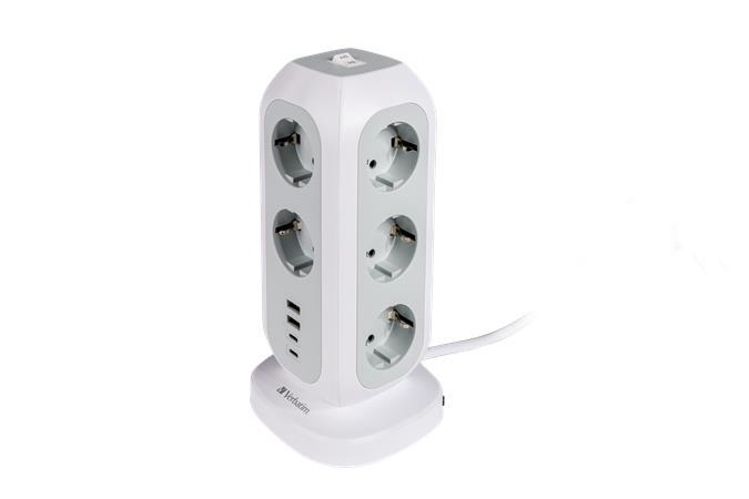 Elosztó, álló, 11 aljzat, 2xUSB-A, 2xUSB-C, VERBATIM "EUPT-01"