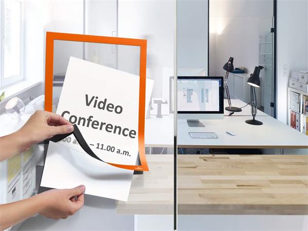 A DURAFRAME® segítségével profin és kényelmesen helyezhetjük ki dokumentumainkat bármilyen sima, kemény felületre, például ablakra, iratszekrényre vagy ajtóra.
