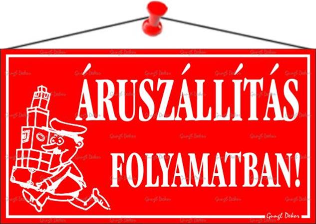 Áruszállítás folyamatban! információs tábla