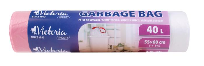 Szemeteszsák, zárószalagos, 40 l, 15 db, 55x60 cm, VICTORIA FACILITY
